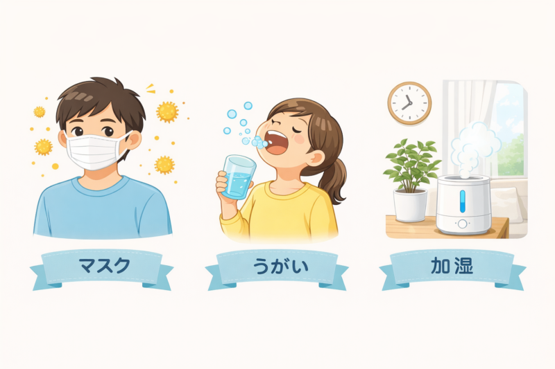 すぐできるセルフケア(うがい・水分補給・加湿)