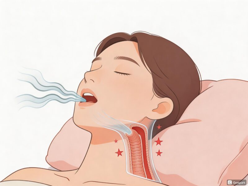 例えば、寝ている間に口が開いていると、朝起きたときに喉がイガイガしたり痛みを感じたりすることがあります。これは乾燥による典型的な症状です。