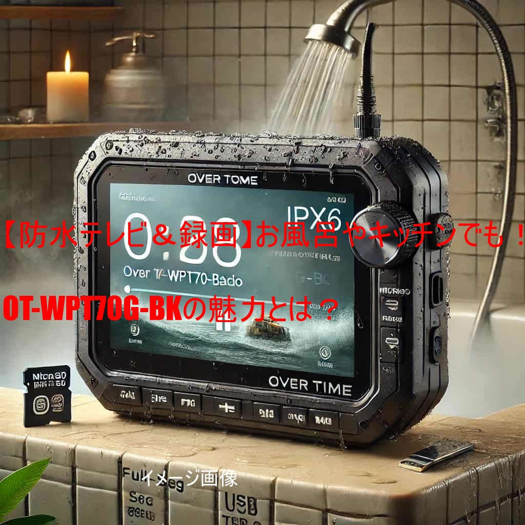 OVER TIME OT-WPT70G-BKは、ダイアモンドヘッド株式会社が2025年4月3日に発売した7インチ防水テレビ&ラジオです。 この製品は、IPX6等級の防水性能を備え、浴室やキッチンなどの水回りでも安心して使用できます。また、フルセグ/ワンセグの自動切替機能やFMラジオ(ワイドFM対応)を搭載し、microSDカード(最大128GB対応)への録画機能も備えています。内蔵バッテリーにより、テレビ視聴で約4時間20分、ラジオ使用で約5時間10分の連続使用が可能です。コンパクトなサイズ(約200mm×115mm×16mm)と軽量設計(約360g)で、持ち運びにも便利です。